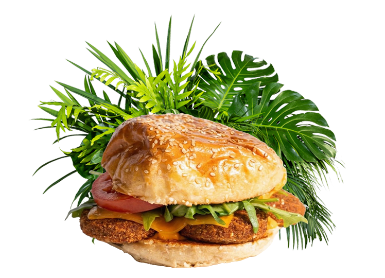 Falafel-Patty, American Cheese, Salat, Tomaten und einer Trüffelmayo Sauce